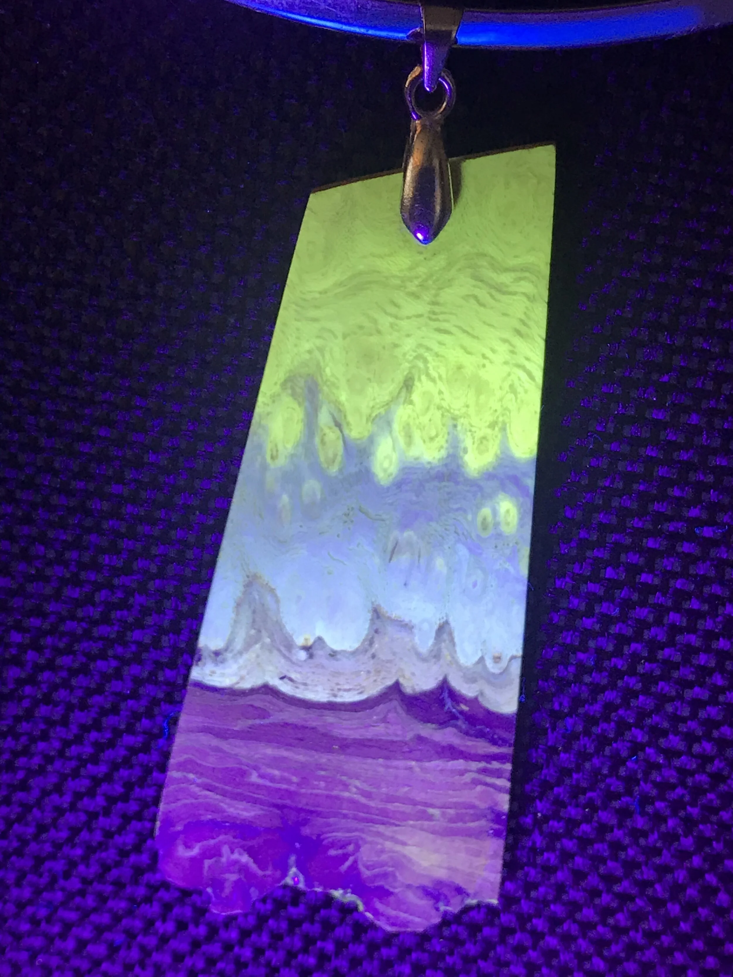 Creatively called “Northern Lights” or “Night Club” jewelry by TKR, Black Locust trees are very hard, durable and grow faster than any other known hardwood tree. Ranging from a pale greenish-yellow to a darker brown with intricate fine grain texture, this unique wood is also fluorescent. Under a black light this wood “lights up” showing off its unique glowing color. Historically this wood was used as fence posts, poles or railroad ties due to its naturally rot, decay and mildew resistant properties.